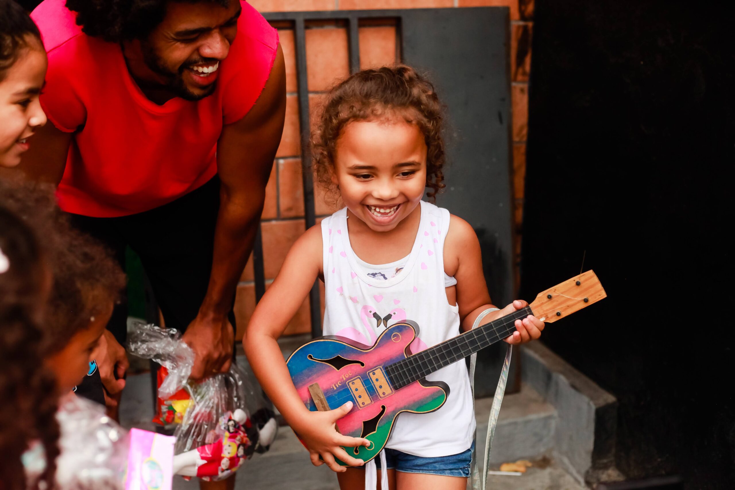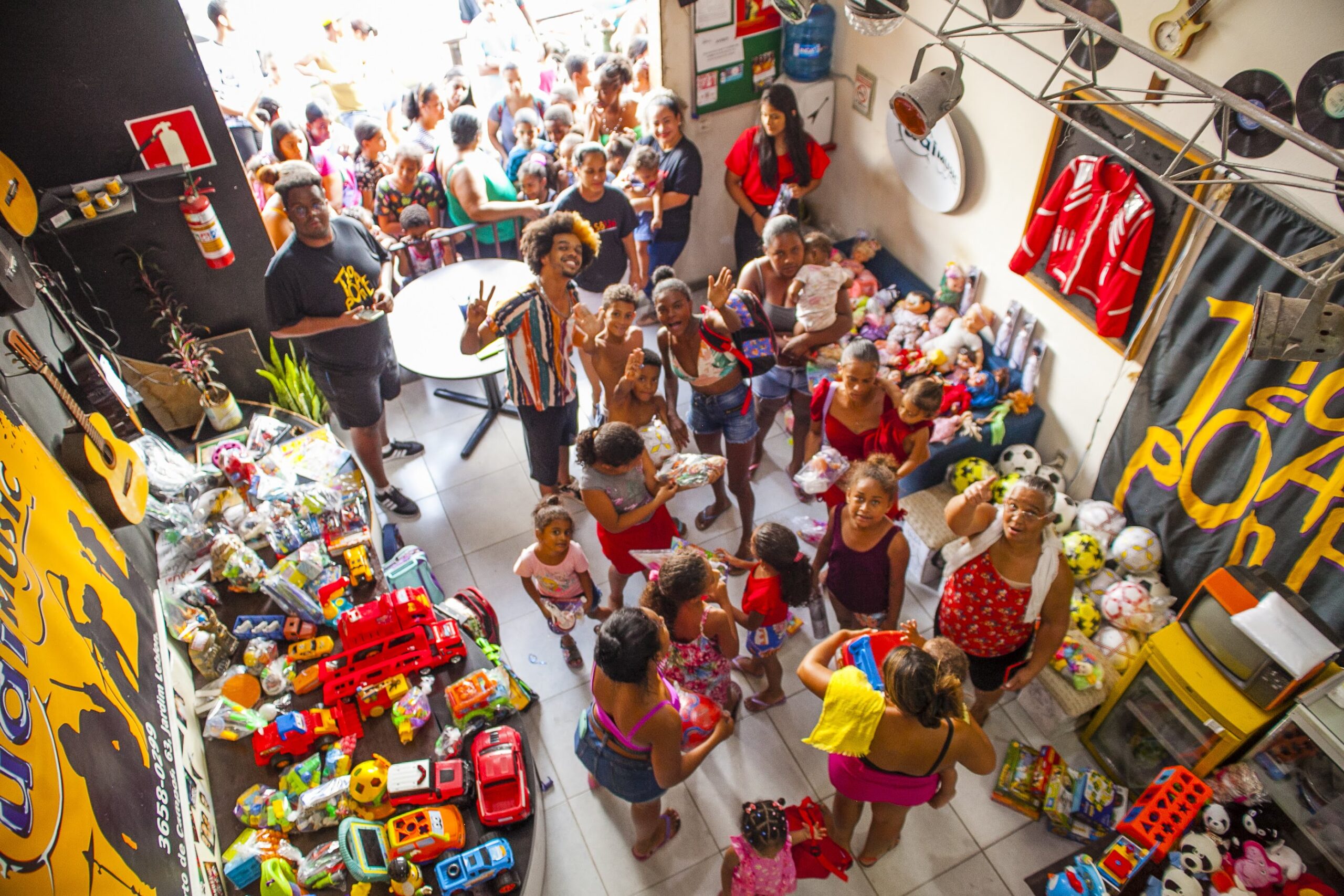 Distribuição de brinquedos novos e usados arrecadados pelo instituto durante o ano. O foco dessa ação solidária se concentra em duas datas festivasl: o Dia das Crianças e o Natal.